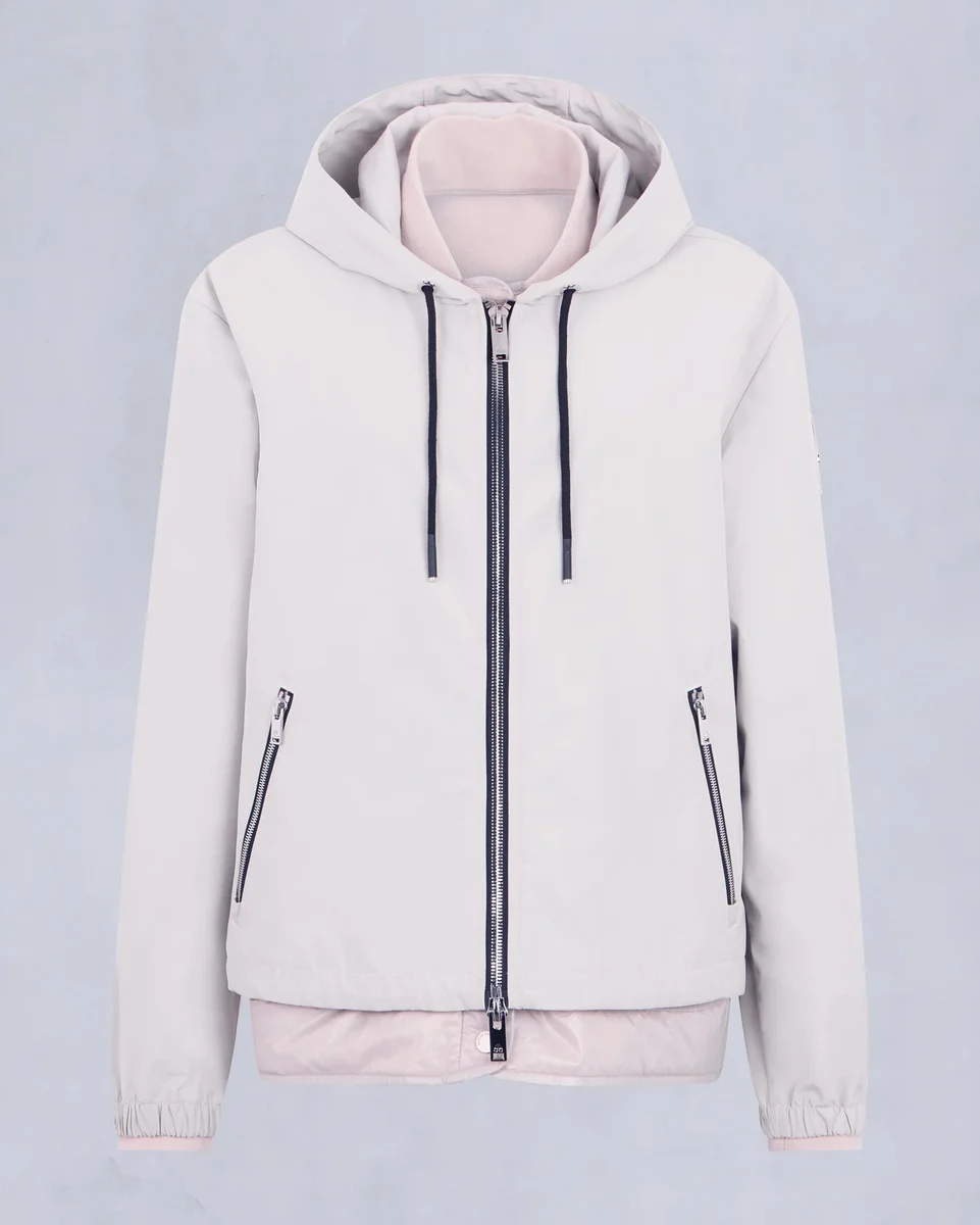 - Yttertyg: Fast huva. Foder: Justerbar huva.