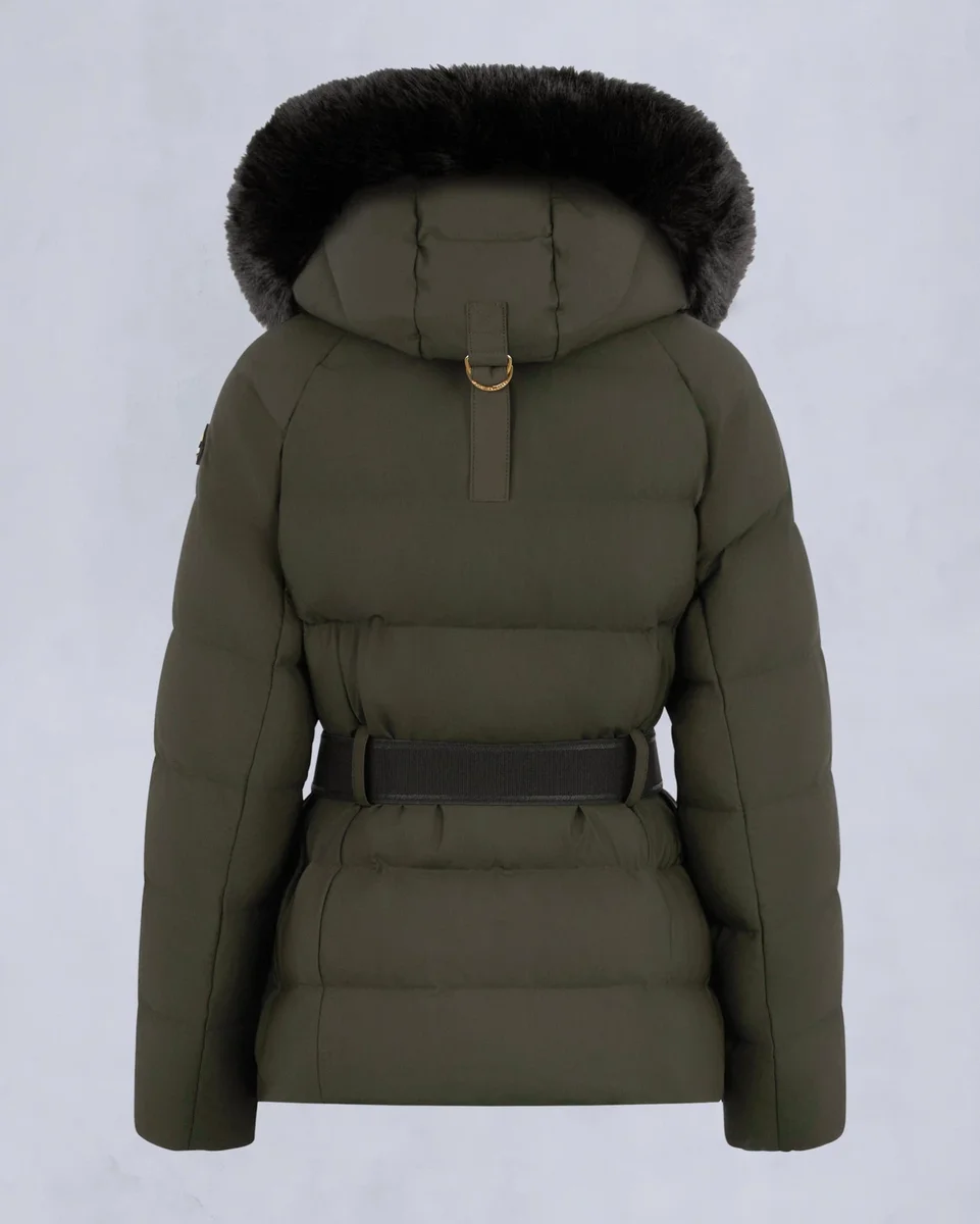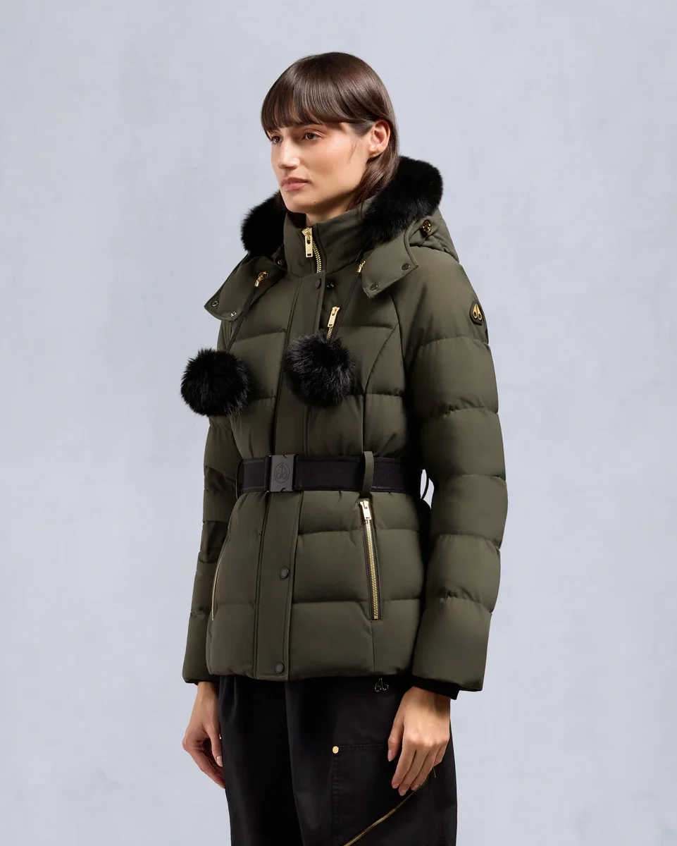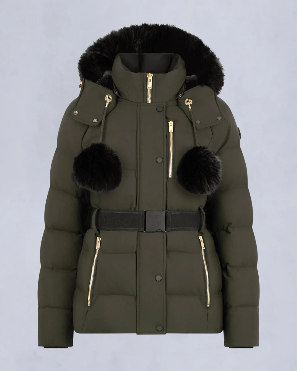 - Avtagbar huva med avtagbar shearlingkant och pom pom-tofsar