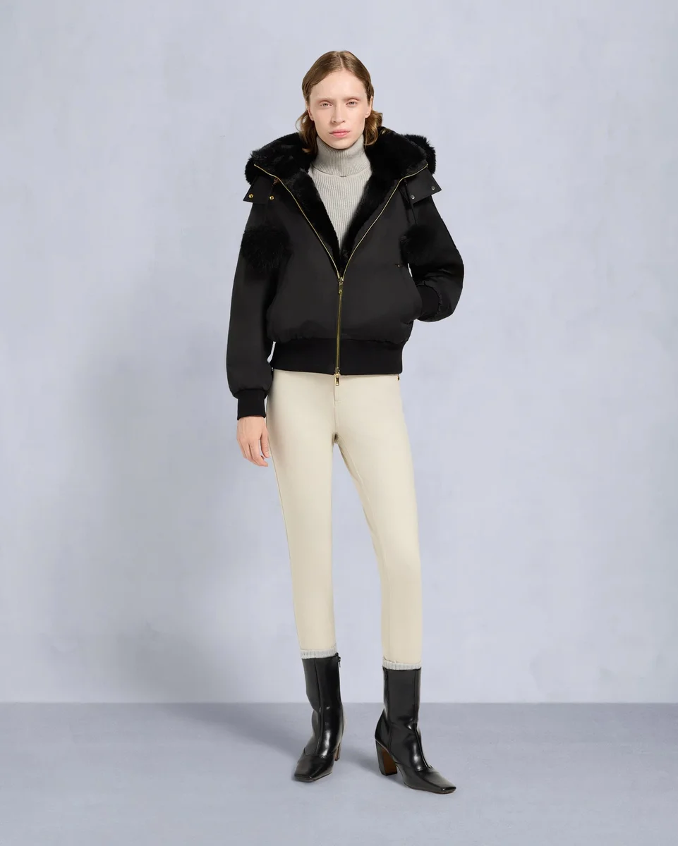 - Skyddsnivå – Nivå 1: Kyligt – Ultralätt och minimalt. Bär dessa plagg för att hålla dig varm under kyliga nätter eller som ett extra lager när det blir kallare än väntat. 100 % polyesterfuskpäls. Tillverkad i Kanada. Design och funktion Avtagbar huva med fuskpälskant och avtagbara fuskpälspomponer. 2-vägsdragkedja. 2 tryckknappsfickor. Guldmetallogo.-vägs dragkedja