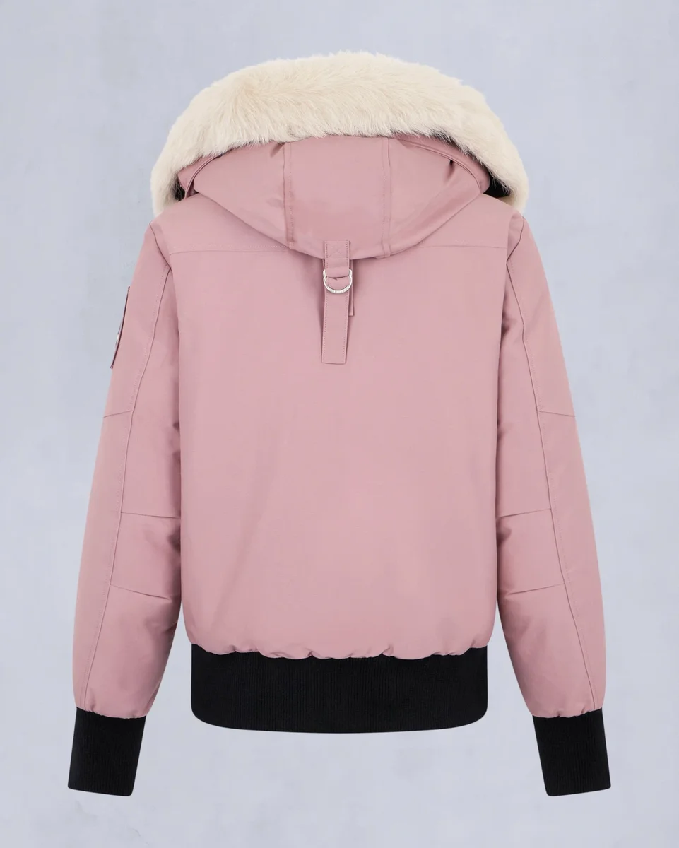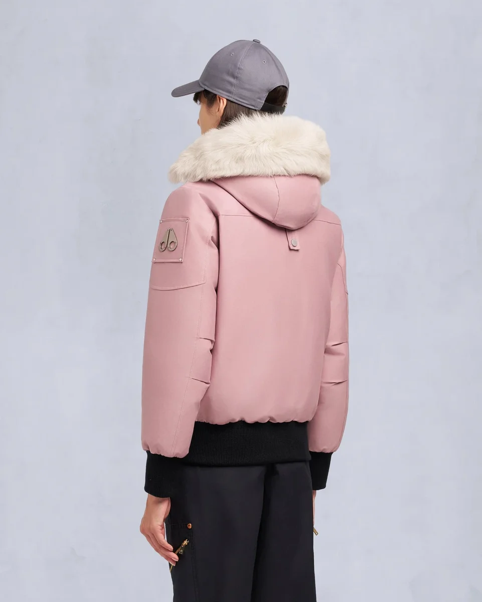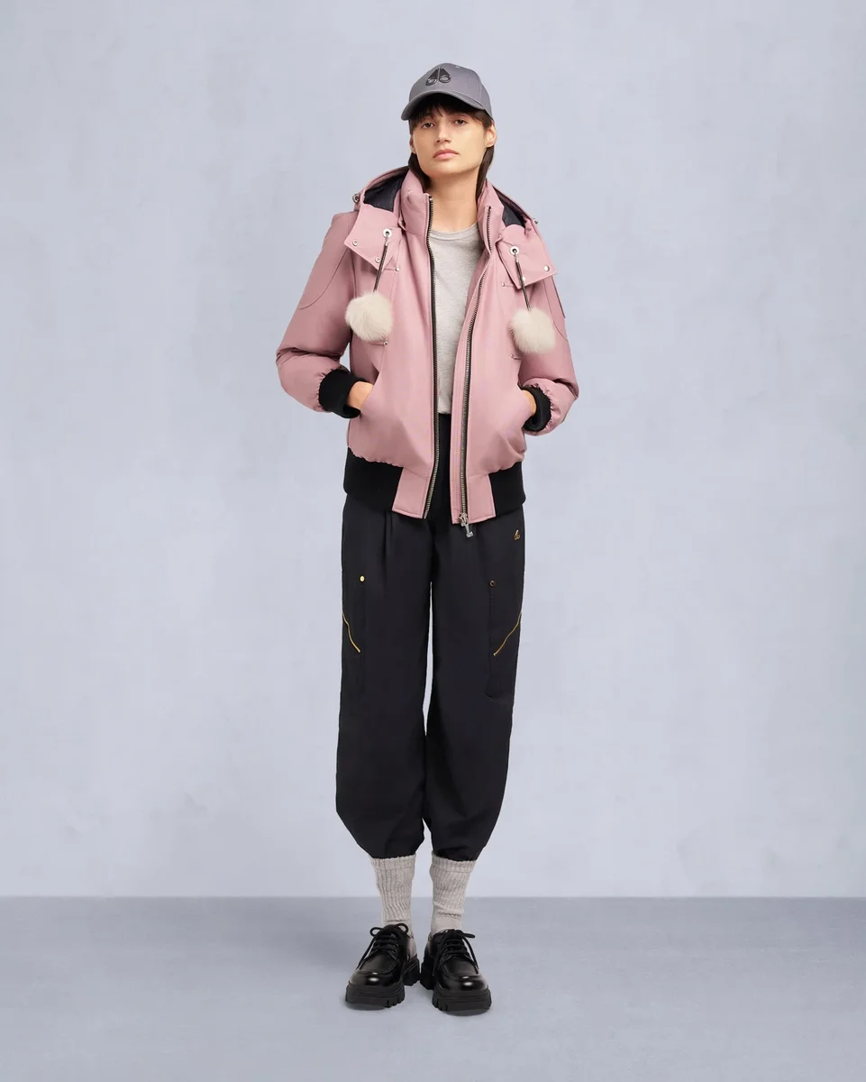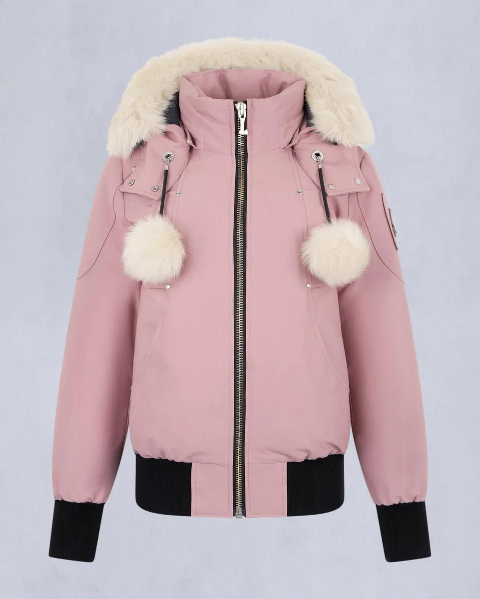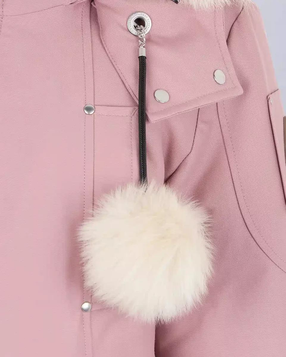 - Avtagbar huva med avtagbar shearlingkant och pom pom-tofsar