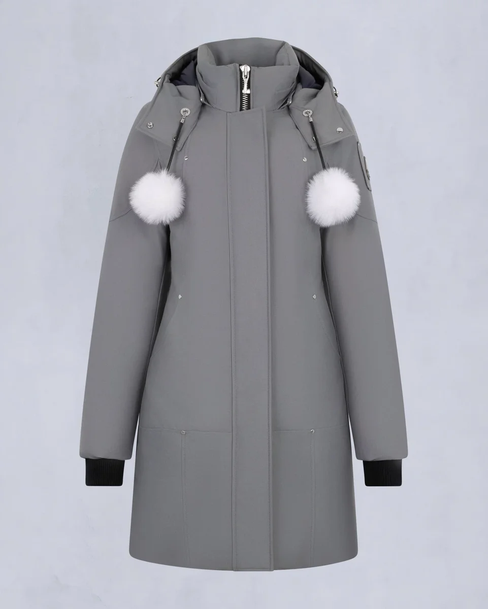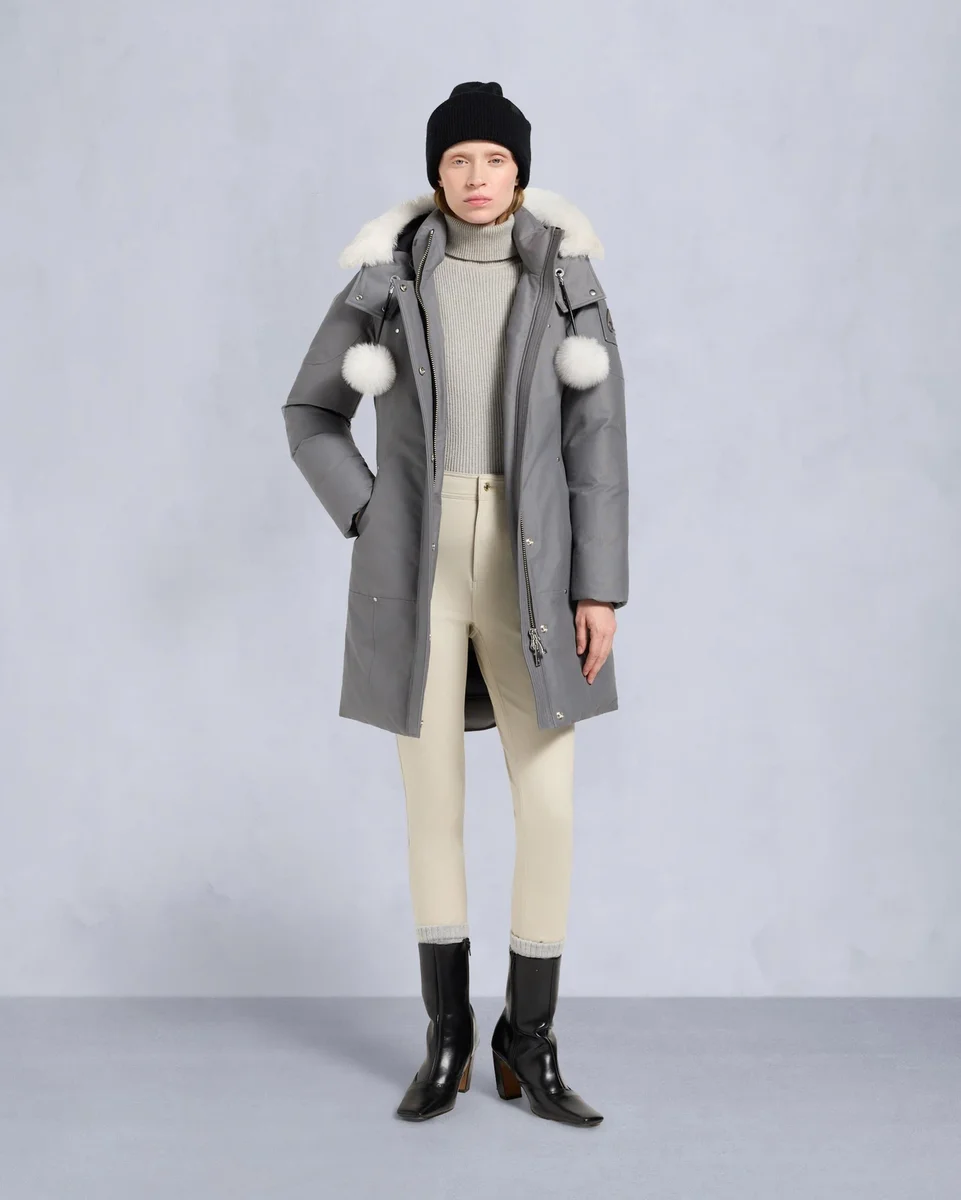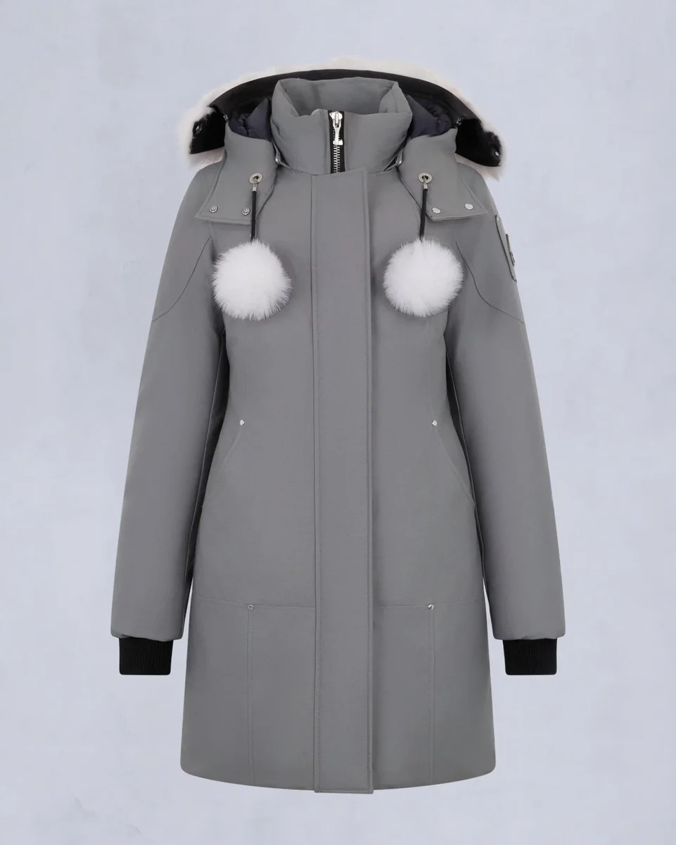 - Avtagbar huva med avtagbar fårskinnskant och pompom