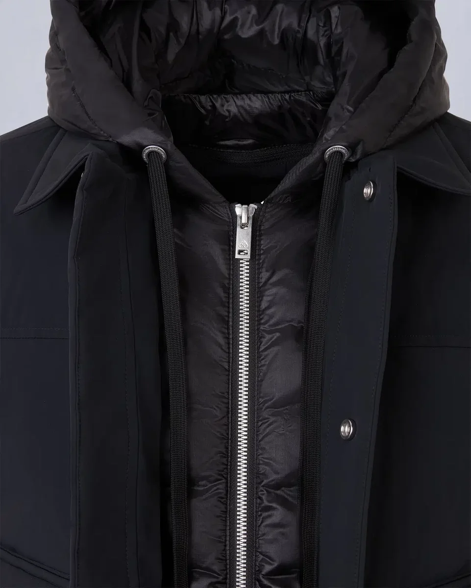 Ta bort avtagbara detaljer innan du tvättar plagget. Kemtvättas ut och in – mild process. Strykning vid maximal temperatur 110 °C – utan ånga.