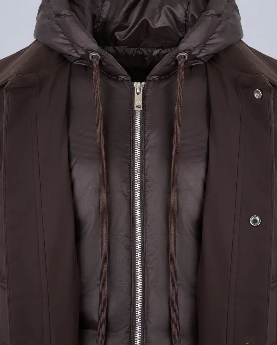 Ta bort avtagbara detaljer innan du tvättar plagget. Kemtvättas ut och in – mild process. Strykning vid maximal temperatur 110 °C – utan ånga.