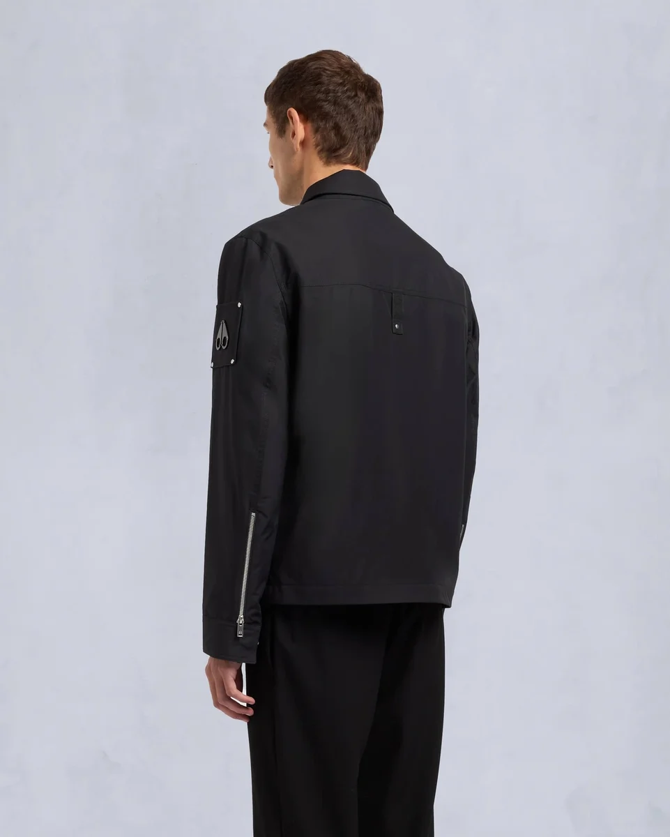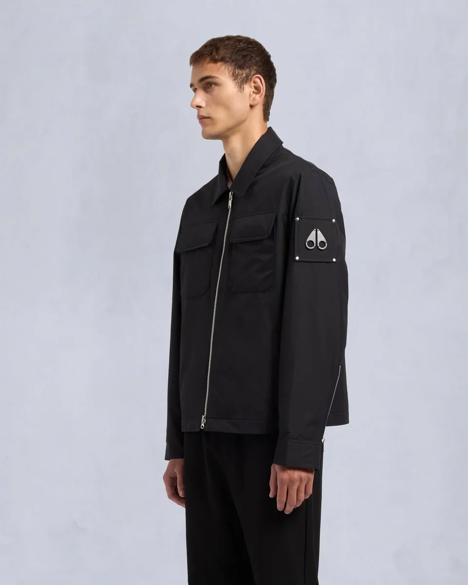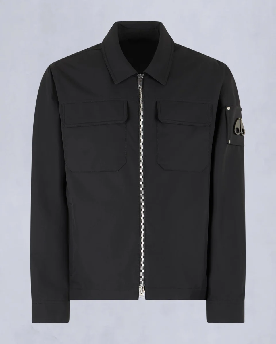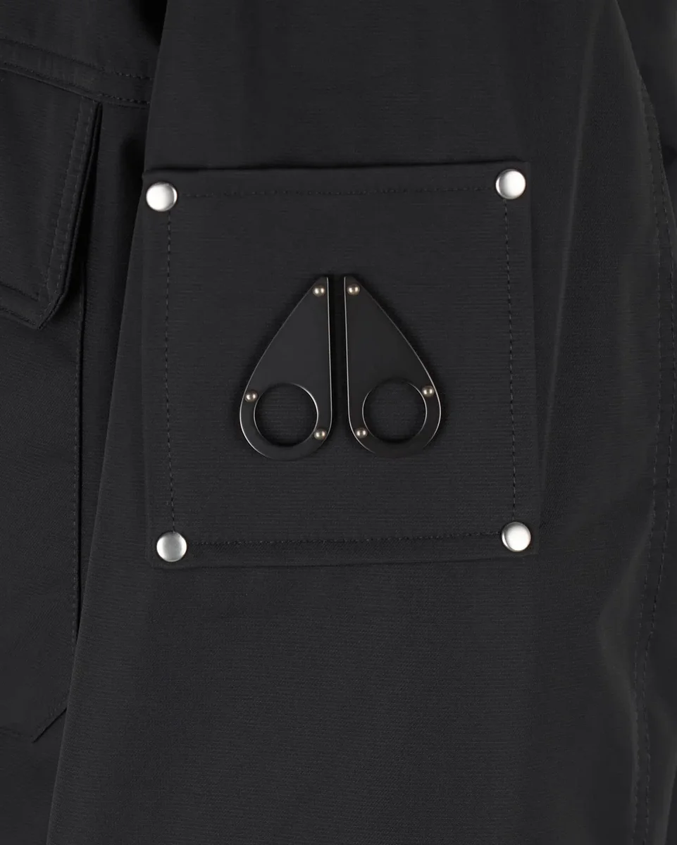 - Medium svart metallogo och broderad älg på kragens bakre del