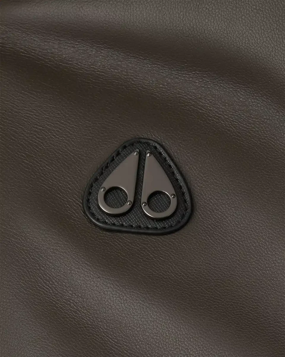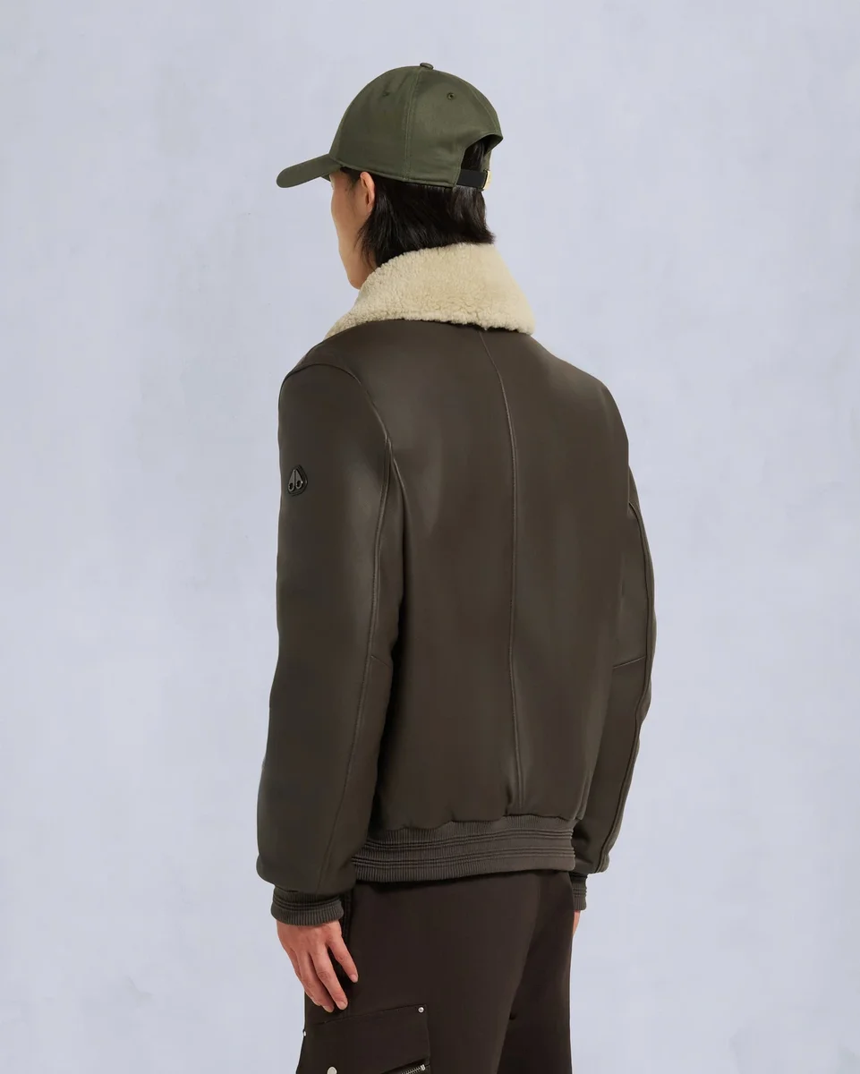 - Avtagbar krage i fårskinn. Läder under kragen.