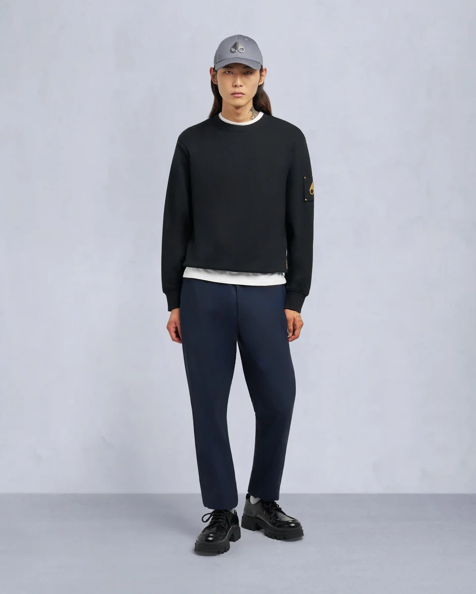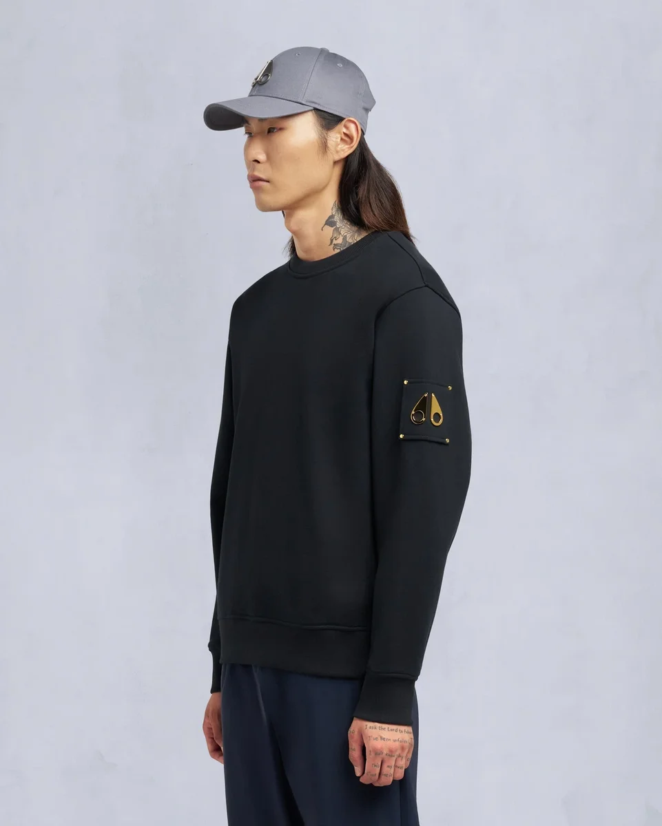 Snyder Crew kombinerar enkel komfort med raffinerad elegans. Tillverkad i 100 % bomullsfrotté med ribbstickad krage, fåll och muddar samt en iögonfallande guldmetall