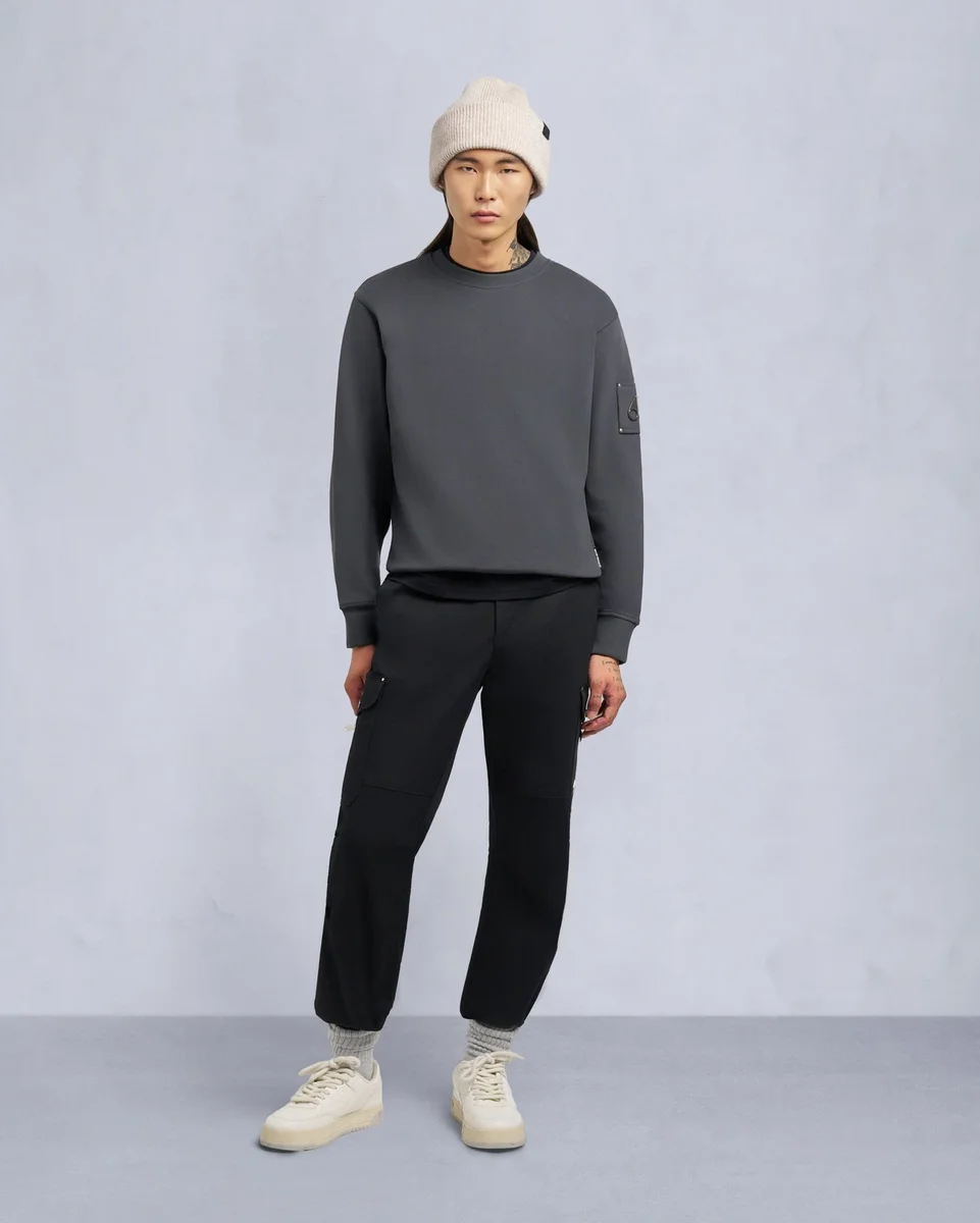 Ta fritidskläderna till nästa nivå med Hartsfield Crew, tillverkad av 100 % bomullsfrankrik och med ribbstickad krage och muddar. Vår signaturfärg gunm