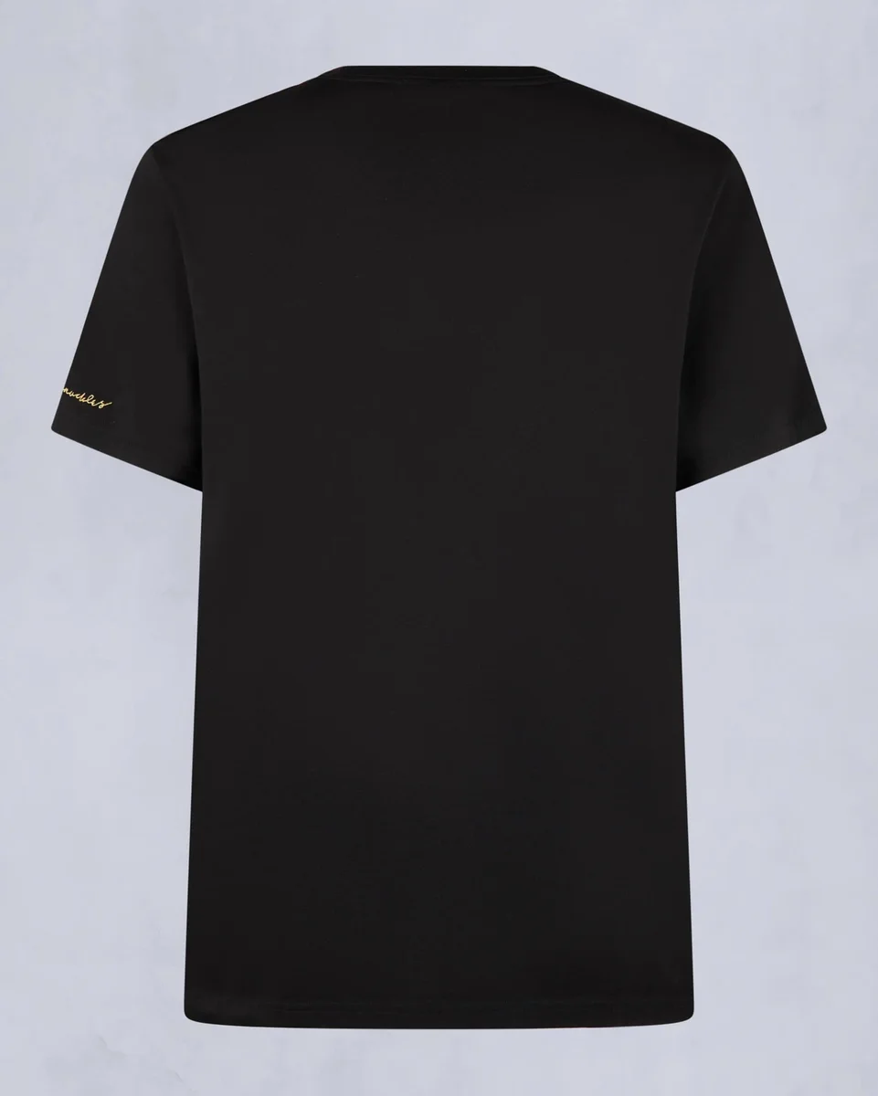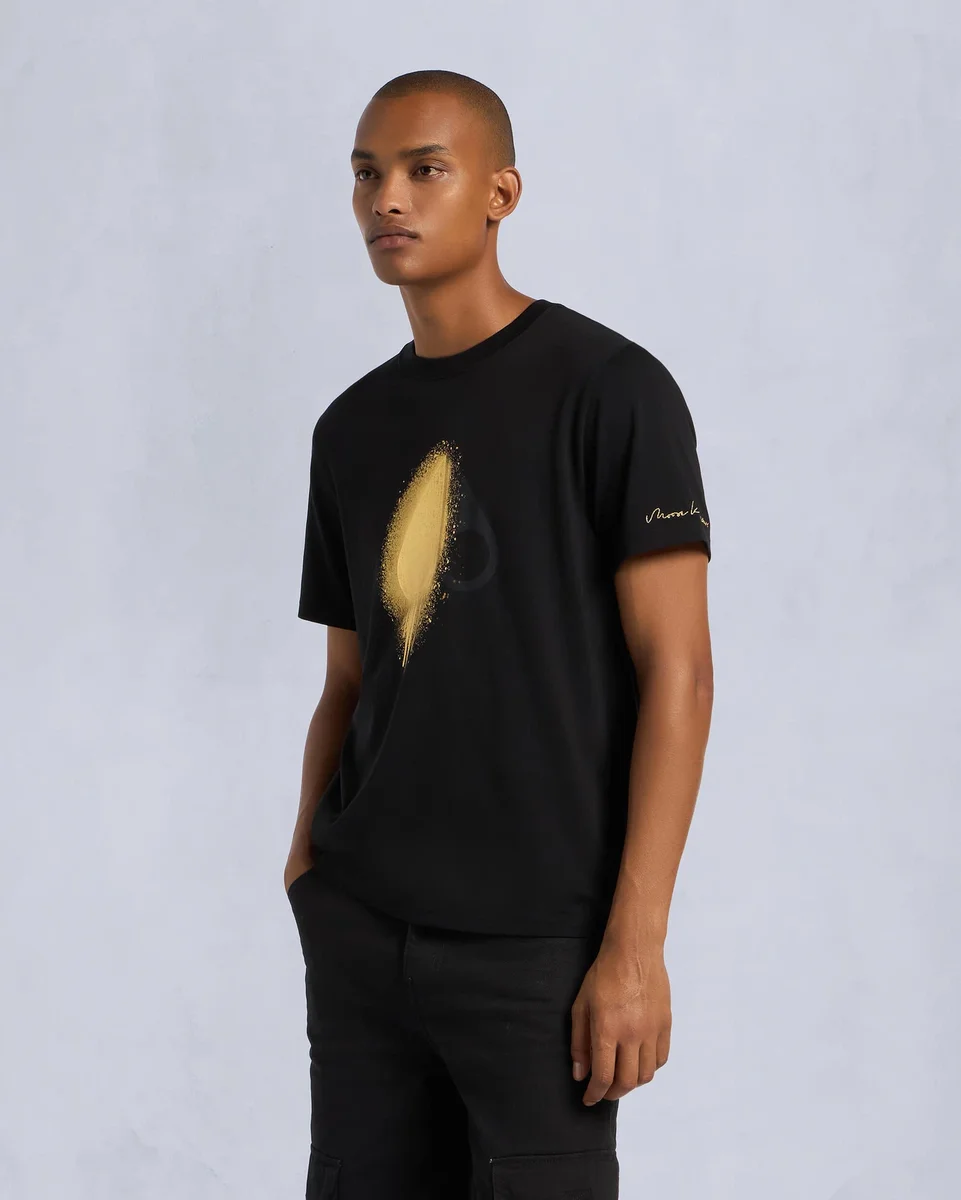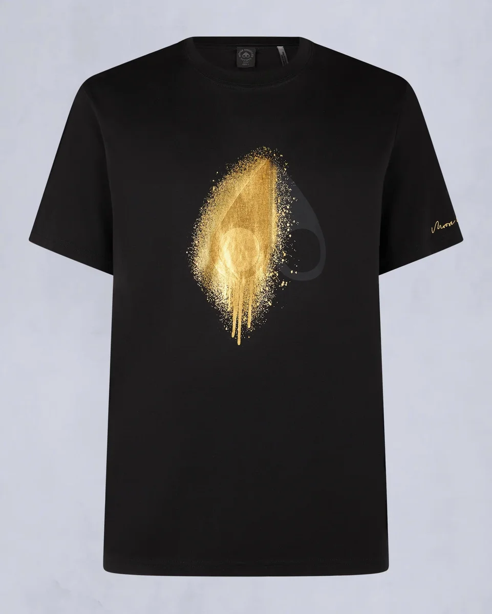 Förhöj din casual garderob med vår premium-T-shirt i bomull, med ett guldfärgat sprayfärgsmotiv som pryder vår logotyp för en konstnärlig touch.