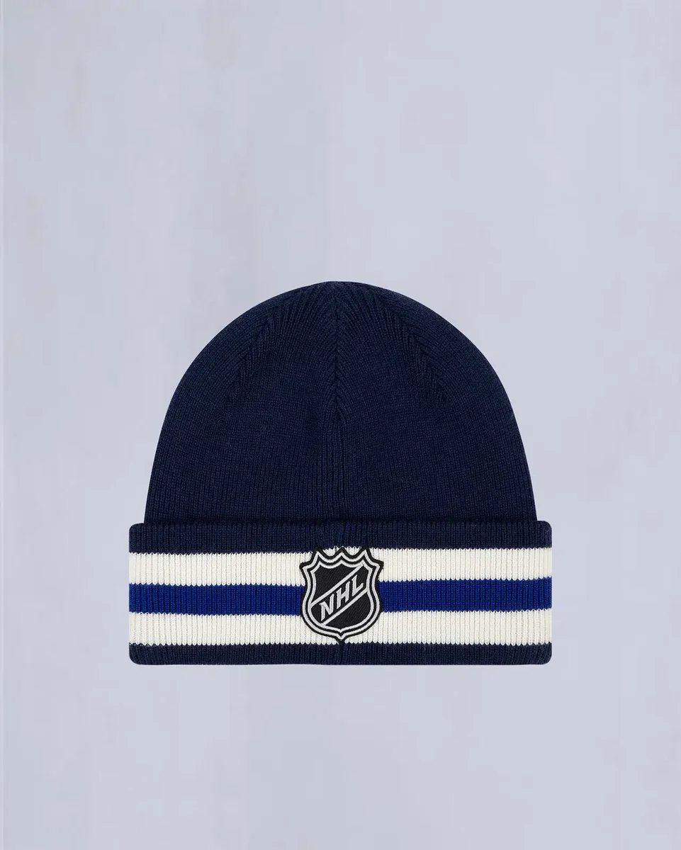 Håll dig varm både på och utanför arenan med vår mysiga Maple Leafs-mössa, som firar samarbetet mellan NHL och Moose Knuckles.