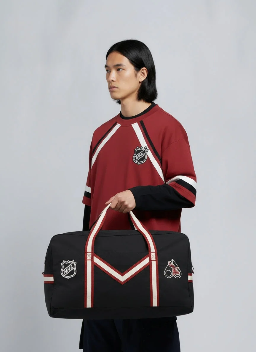 Inspirerade av den klassiska hockeyväskan har vi skapat en högpresterande version med varumärkeslogotyp för att hedra samarbetet mellan Moose Knuckles och NHL.